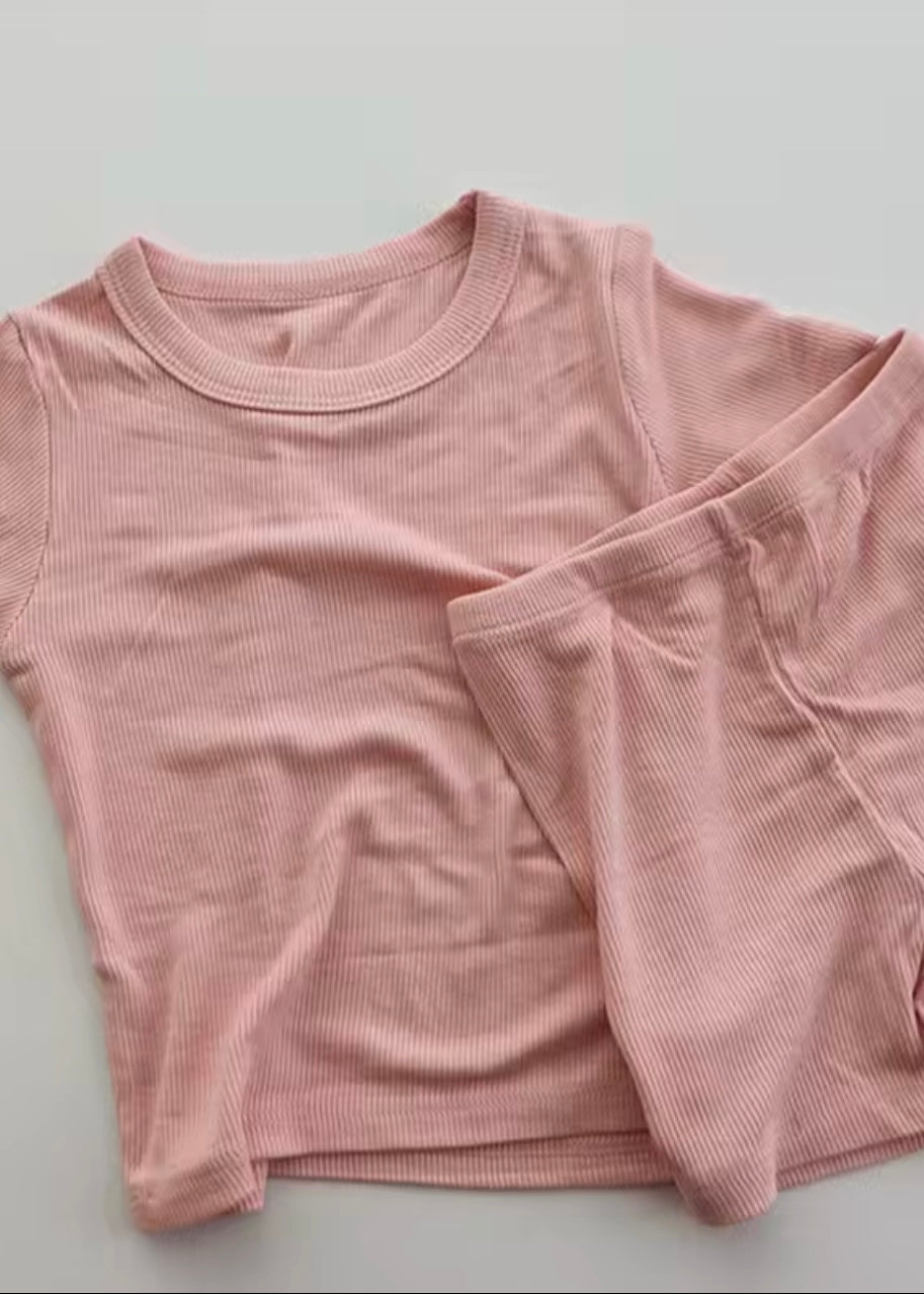This Summer Set is the perfect go-to outfit for your little ones during those warm, sunny days. Crafted from an ultra-stretchy and lightweight ribbed material, this set ensures all-day comfort and freedom of movement. Its breathable fabric is gentle on sensitive skin, making it ideal for summer adventures or cozy indoor days.