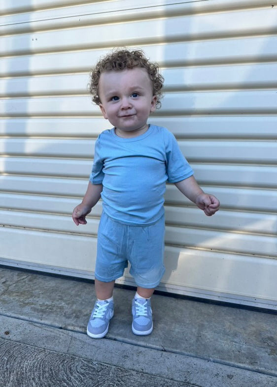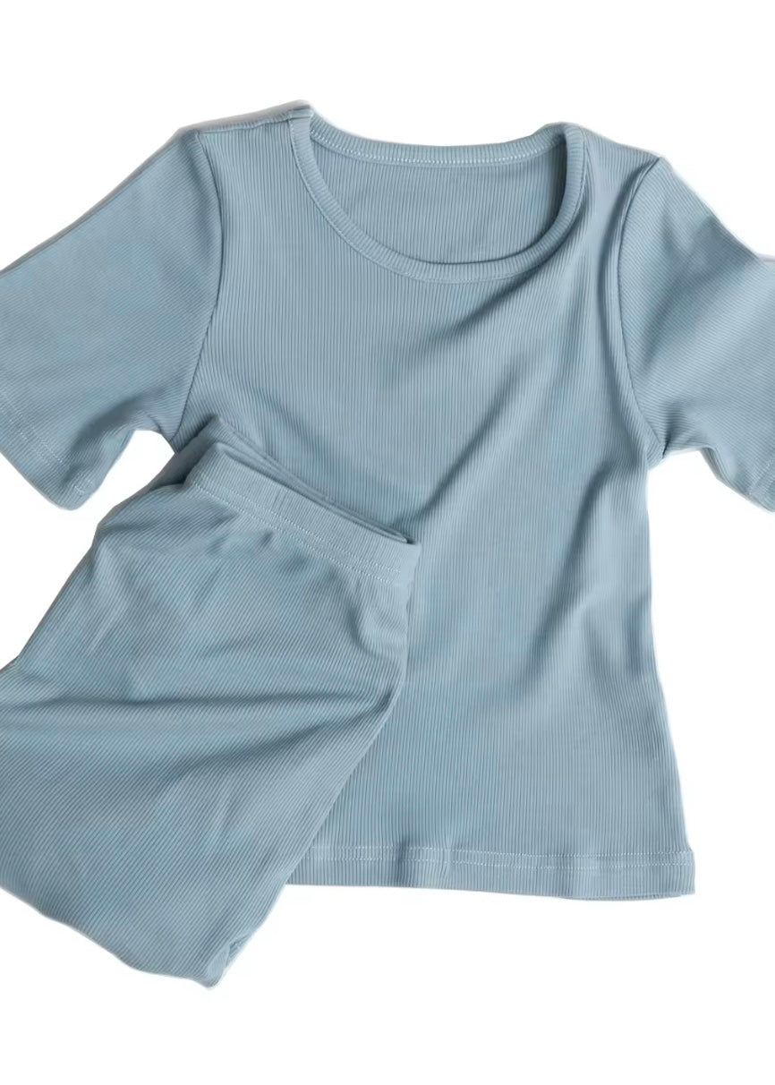This Summer Set is the perfect go-to outfit for your little ones during those warm, sunny days. Crafted from an ultra-stretchy and lightweight ribbed material, this set ensures all-day comfort and freedom of movement. Its breathable fabric is gentle on sensitive skin, making it ideal for summer adventures or cozy indoor days.