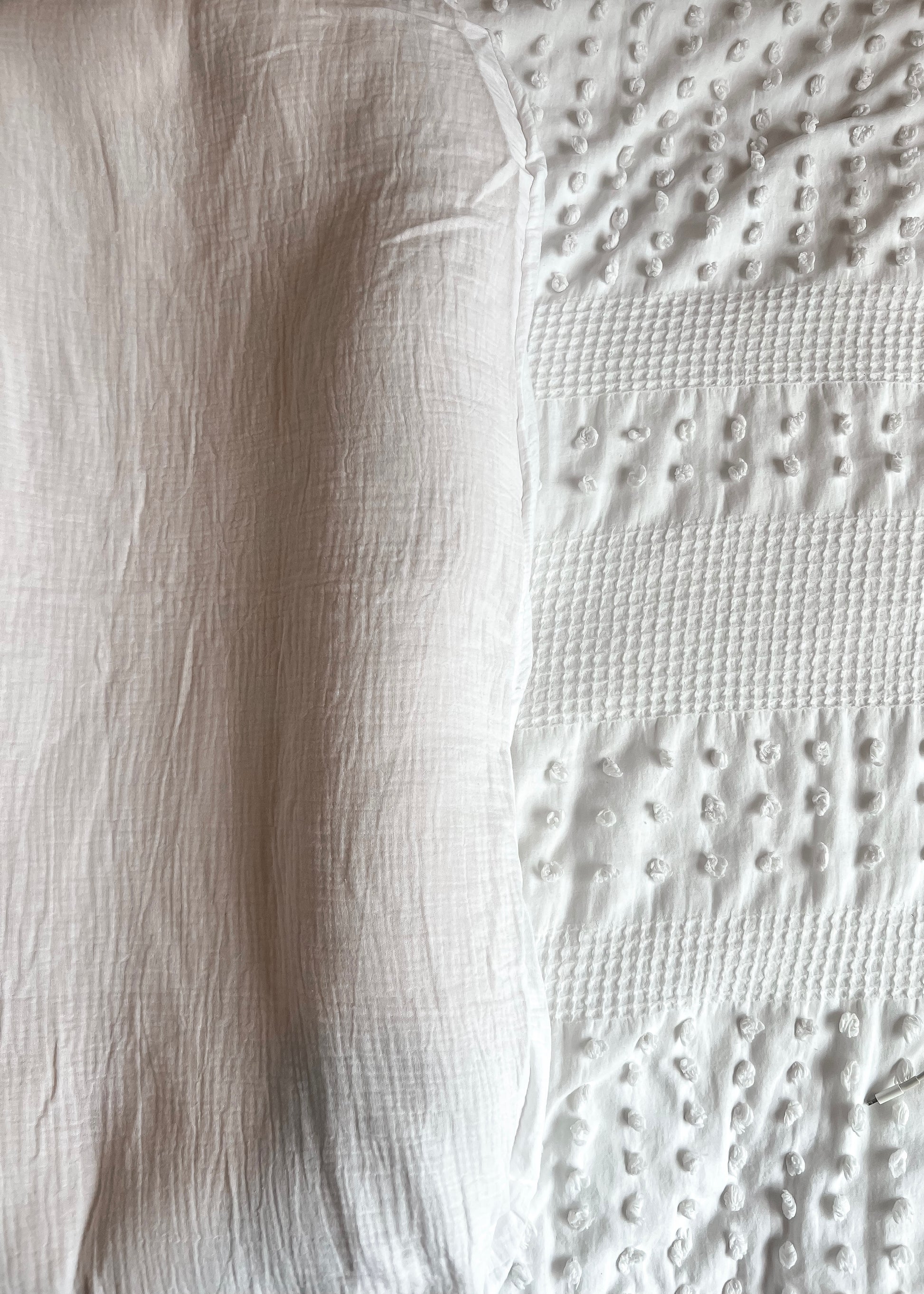 Available in three classic colours—pink, white, and blue—our covers are crafted from a soft, breathable muslin fabric that’s gentle on delicate skin while adding a beautiful touch to your nursery.
